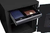 機能と落ち着きのあるデザイン性を追求した耐火・耐水金庫。小型でも安心の60分耐火。急加熱・衝撃落下試験にも合格した強固なボディ。耐火性能に加え火災時のスプリンクラーによる散水や消火放水から守る耐水性能も標準装備。多機能のデジタルテンキーロックを搭載し、全機種セキュリティに配慮した警報アラームや覗き見防止機能付き。