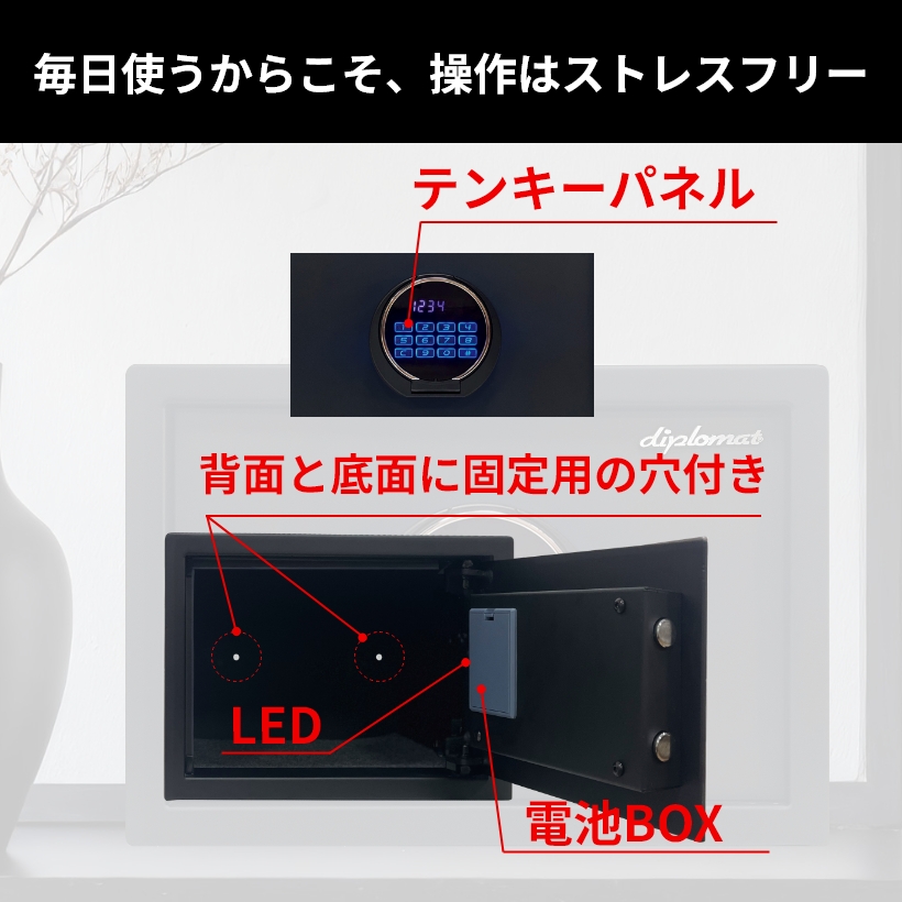 付属品:単三電池4本、緊急解除キー2本、説明書・保証書、固定用ネジ・ワッシャー・ネジ用スリーブ